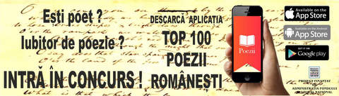 Aplicaţia POEZII-Top 100 de poezii româneşti poate fi descărcată din Android, Google Play şi Apple Store. Prin noul instrument de comunicare, tinerii autori pot concura cu mult prea cunoscuţii clasici ai literaturii române. Odată ce au aplicaţia în telefon pot introduce GRATUIT creaţii proprii şi recomanda prietenilor să le voteze opera. Topul se actualizează singur.