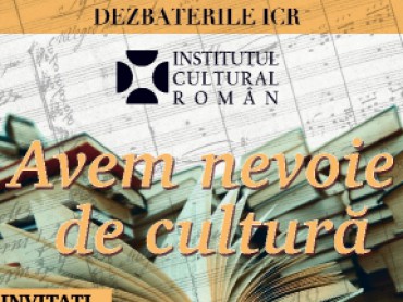 Joi, 17 septembrie 2015, de la ora 16.30, la Institutul Cultural Român (Aleea Alexandru 38, București) va avea loc prima dezbatere din seria „Avem nevoie de cultură“. Vor participa Doru Costea, avocat, Vintilă Mihăilescu, antropolog, directorul Departamentului de Sociologie al Facultății de Științe Politice, Universitatea București, Andreea Răsuceanu, scriitoare și critic literar, Claudia Șerbănuță, director al Bibliotecii Naționale, și Radu Boroianu, președintele ICR. Moderator: Dragoș Ghițulete.