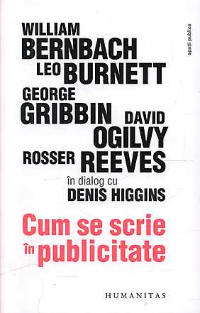 „Marii copywriteri ai secolului XX, adulaţi cândva ca nişte vedete de cinema, sunt preţuiţi azi ca nişte profeţi. Numele lor au devenit la rându-le branduri. Fiecare defineşte în prezent câte o cale majoră, câte o magistrală pe ruta comunicării comerciale: Ogilvy – fenomenologia produsului; Reeves – focusul pe eficienţă; Burnett – efectul dramatic; Gribbin – forţa de a capta atenţia; Bernbach – persuasiunea abilă, surprinzătoare… Denis Higgins îi înfruntă pe aceşti maeştri ai seducţiei cu o abilă ştiinţă a manipulării intervievistice, menită să-i flateze, să le dejoace tentaţiile de lăudăroşenie corporatistă şi să le dezvăluie astfel intimitatea laboratorului creativ.“ (Florin Dumitrescu)