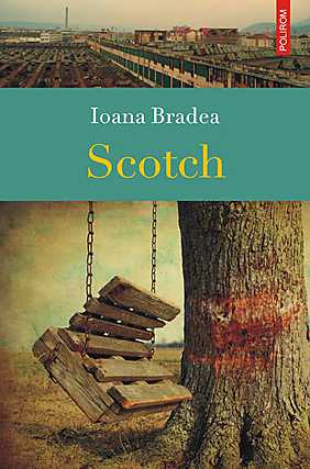 Scotch este imaginea unui dezolant spaţiu postindustrial dintr-un oraş de provincie: uzine dezafectate, muncitorii şi patronii „capitalişti” ai puţinelor fabrici salvate de la dispariţie, resturi de fier şi beton, crisma incredibil de ieftină şi blocul de nefamilişti. Aici se schiţează fragil o poveste între un inginer tânăr, incremenit în capcană Fabricii de Aliaje Speciale, şi secretara directorului, care traversează dezolantul peisaj pe role, cu volumul lui Marcus Aurelius în rucsac. Peste toate pluteşte amintirea lui Ilă, ţăran mort în patul lui, în sunet de cetera, şi o abia ghicită nostalgie a lumii rurale dispărute. Cartea Ioanei Bradea este un straniu poem muzical despre fabrici şi uzine agonizante, despre macarale şi maşini cu denumiri tehnice complicate, devenite inutile în brava lume nouă a României contemporane.