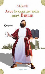 „Anul în care am trăit după Biblie ilustrează încercarea mea de a duce o existenţă esenţialmente biblică, de a respecta fiecare regulă din Biblie, cât mai îndeaproape. M-am supus faimoaselor zece porunci, dar şi altor sute de reguli, ignorate deseori: nu purta haine din fibre mixte, nu-ţi rade barba, aruncă cu pietre în infideli. De ce? Pentru că am crescut într-un cămin cu tradiţie seculară (oficial sunt evreu, dar, de fapt, sunt evreu la fel cum Olive Garden este un restaurant italian). Am presupus întotdeauna că religia se va veşteji şi că vom trăi într-o lume a neo-iluminismului. M-am înşelat spectaculos, desigur. Deci, am sărit peste esenţialul existenţei umane sau jumătate de lume a fost înşelată? Am decis să mă arunc cu capul înainte, să încerc experienţa biblică şi să descopăr atât lucrurile sale bune, cât şi pe cele irelevante pentru secolul XXI. Anul astfel petrecut a fost fascinant, distractiv şi informativ. A fost în egală măsură ireverenţios şi reverenţios. A fost plin de introspecţii surprinzătoare aproape în fiecare zi (ştiu că nu e biblic să mă laud, vă cer iertare pentru asta…).“