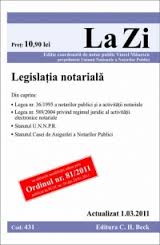Lucrarea, coordonată de preşedintele Uniunii Naţionale a Notarilor Publici, notar public Viorel Mănescu şi actualizată la data de 1 martie 2011, cuprinde, pe lângă Legea nr. 36/1995 a notarilor publici şi a activităţii notariale şi Regulamentul acesteia de punere în aplicare, Legea nr. 589/2004 privind regimul juridic al activităţii electronice notariale, un extras din Codul fiscal însoţit de normele metodologice de aplicare, Statutul Casei de Asigurări a Notarilor Publici, precum şi alte acte normative relevante. În plus, notele de subsol, precizările şi corelaţiile legislative contribuie la o mai bună cunoaştere şi înţelegere a legislaţiei în domeniu.
