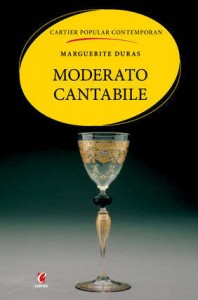 Moderato cantabile începe banal. Anne, o femeie bogată ia ore de pian şi face conversaţie cu plebea. Merge în crâşme şi bea vin. Acolo îl cunoaşte pe Chauvin, unul din clasa de mijloc. De abia dupa căteva zeci de pagini se întâmplă ceva. Începutul e borring. Când o femeie este ucisă într-un bar de către un bărbat, ea îşi imaginează motivul crimei împreună cu amicul de pahar Chauvin. De abia aici tensiunea creşte. Ce e spectaculos e modul de scriere. Ca cititor nu ştii când vorbeşte un personaj sau altul. De fapt doar trei nume apar în carte: a ei, a partenerului de crâşmărit şi a profesoarei de pian.