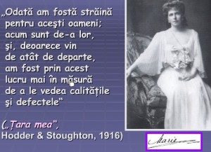 Mărturisesc că din casele bunicilor mei nu lipseau cele trei volume. Toţi o iubeau pentru pasiunea şi devotamentul său faţă de ţară. Deşi născută ca ducesă de Kent, s-a căsătorit de tânără cu Ferdinand, moştenitorul tronului României. A sosit fără fast şi a plecat într-o toamnă a doliului naţional, ca un erou.