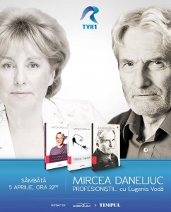 Sâmbătă, 5 aprilie, de la ora 22.00, la TVR1, cineastul Mircea Daneliuc este invitatul special al emisiunii ”Profesioniștii”, talk-show-ul cultural cu cea mai mare audiență din România. Un dialog incitant pe care Eugenia Voda îl propune bine-cunoscutului regizor și scenarist a peste 20 de filme savurate de publicul larg, dintre care ”Croaziera”, ”Proba de microfon”, ”Glissando”, ”Senatorul melcilor”. Mircea Daneliuc a semnat regia a patru spectacole de teatru jucate în toată țara și este autorul a 14 volume de proză și dramaturgie. Editura Adenium a publicat în 2013, în Colecția Punct RO. Proză, două dintre cărțile lui Mircea Daneliuc. Este vorba despre cel mai recent volum, ”Ca un grătar de mici. Un picior de plai, cu șpițul”, care l-a determinat pe Alexandru Petria să afirme că în stilul scriitoricesc al lui Daneliuc „e aceeași tăietură nervoasă ca în filmele lui, care te subjugă și te provoacă să gândești, n-are cum să te lase indiferent, ori îl înjuri, ori îți place, călduțul n-are loc în pagini, aceeași atenție la detalii, asezonată cu ironie, cinism și sarcasm” și romanul ”Pisica ruptă” (ediția a doua, revăzută și adăugită).