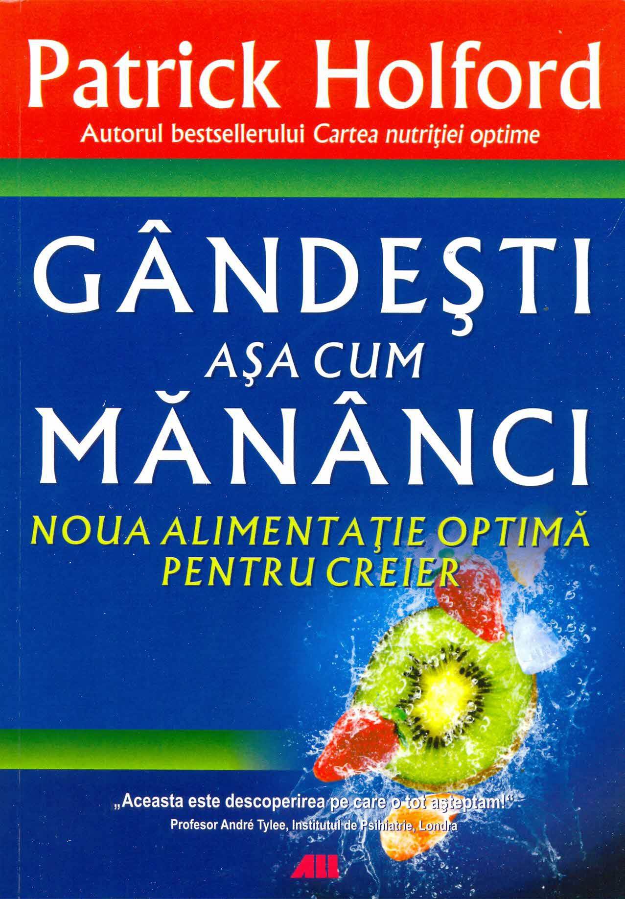 Gândeşti aşa cum mănânci este un ghid clasic, practic, complet şi uşor de citit, menit să ne îmbunătăţească starea emoţională, să ne fortifice memoria, să ne ascută mintea şi să ne rezolve problemele de sănătate mintală prin intermediul nutriţiei.