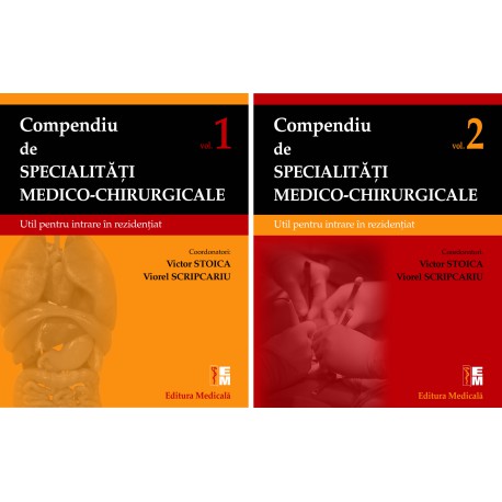 Prezentare: Lucrarea este elaborată de un număr de 120 autori, cadre didactice la Universitățile de Medicină și Farmacie din România sub coordonarea Prof. Dr. Victor Stoica și Viorel Scripcariu. Subiectele incluse în programa examenului de rezidențiat din 2016 sunt tratate în mod complex prin expunerea celor mai recente achiziții de diagnostic, fiziopatologie și terapeutică verificate de practica medicală internațională. Tabelele respective și schemele explicative clare caracterizează toate expunerile. Compendiul cuprinde toate temele din specialitățile medicale și chirurgicale stabilite de Ministerul Sănătății pentru concursul de rezidențiat: pneumologie, cardiologie, gastroenterologie și hepatologie, nefrologie, neurologie, hematologie, endocrinologie, reumatologie, boli infecțioase în 50 de capitole din specialitățile medicale ale cuprinsului. Dintre specialitățile chirurgicale sunt incluse: chirurgie generală, ortopedie, ORL, urologie, ginecologie-obstetrică. Nu lipsește nici un subiect din programa de concurs de rezidențiat. Expunerile clare și didactice cuprind tot ce este actual în medicina modernă dar sunt adaptate la particularitățile asistenței medicale românești. Compendiul de specialități medico-chirurgicale poate fi consultat cu profit de către toți medicii practicieni din toate spitalele din țară.