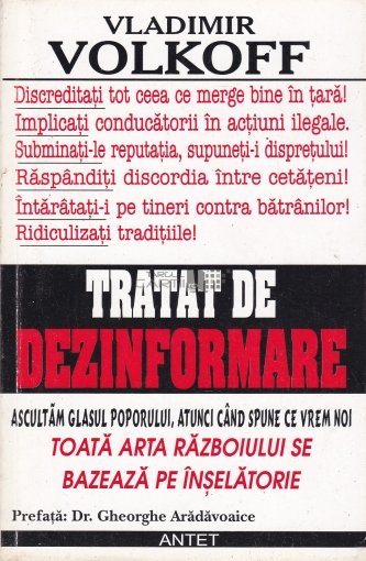 Unul dintre cei mai curajoşi şi mai talentaţi analişti ai fenomenului dezinformării, consilier pe lângă serviciile secrete franceze, Volkoff ne ghidează într-o lume unde nimic nu este ceea ce pare a fi. Operaţiuni de intoxicare, abuz de cuvinte, deturnarea sensului, corupţie şi lipsă de scrupule, numeroase exemple din istoria recentă, o carte despre lumea perversă şi fascinantă a persuasiunii.