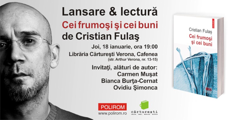 Editura Polirom vă invită joi, 18 ianuarie, de la ora 19:00, la Librăria Cărtureşti Verona – Cafenea (str. Arthur Verona, nr. 13-15), la o întîlnire cu scriitorul şi traducătorul Cristian Fulaş, cu prilejul apariţiei volumului Cei frumoşi şi cei buni, publicat în colecţia Ego Proză a editurii.